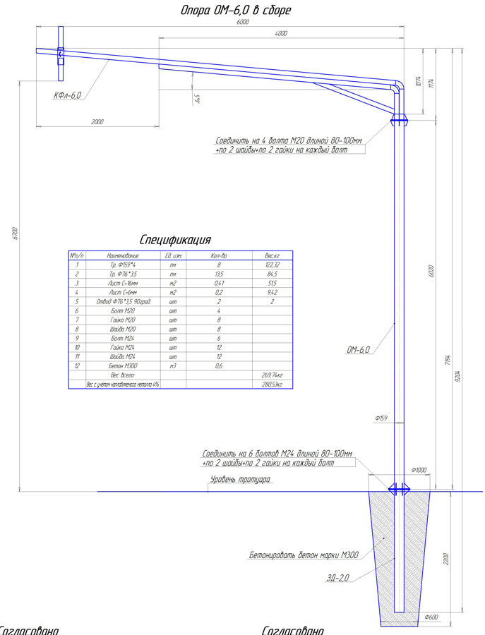 По желанию заказчика консольные опоры могут быть изготовлены высотой от 4000 мм до 7000 мм (от уровня земли) и вылетом консоли от 2000 мм до 8000 мм. Варианты антикоррозионного покрытия: горячее цинкование, холодное цинкование, грунт + эмаль, грунт.